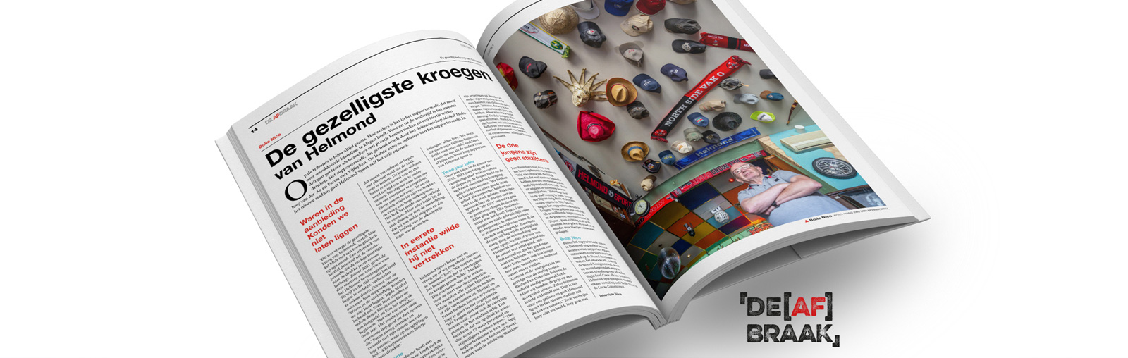 ‘De (Af)Braak wordt een prachtig boek met veel foto’s, interviews, anekdotes en verhalen van en over de mensen van stadion De Braak. Het oude stadion, dat binnenkort zal verdwijnen. Denk aan (oud-) spelers, trainers, supporters, vrijwilligers, bestuursleden etc. Dit boek komt op non-profitbasis tot stand door samenwerking van een aantal personen. Teksten: Jan-Willem van den Enden, fotografie: Hans van den Berkmortel, eindredactie: Maarten Driessen en vormgeving: Harold van der Horst. Het wordt een hardcover van ongeveer 250 pagina’s, formaat 245 x 342 mm. De opbrengst krijgt een mooie bestemming bij Helmond Sport. Het boek zal rond begin november gereed en verkrijgbaar zijn bij o.a. de fanstore van Helmond Sport in de Passage in Helmond.